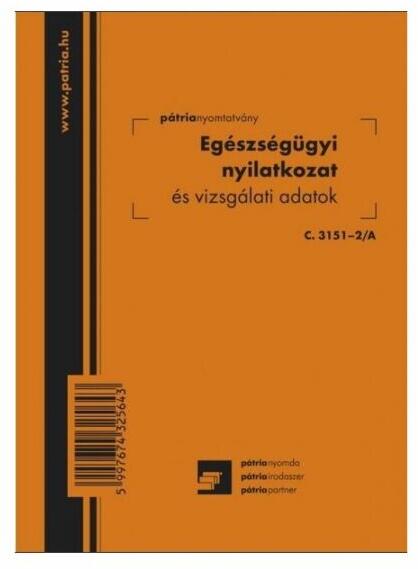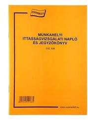 Munkahelyi ittassági vizsgálati napló és jegyzőkönyv. A/5 méretű, álló, 64 lapos, 1 példányos. Minőségi belív, karton fedlap.