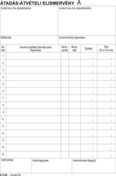 Nyomtatvány, átadás-átvételi elismervény, 25x3, A5, VICTORIA B. 13-69, 10 tömb/csomag (NVB1369) - kiváló átírás - kiváló perforáció - ellenőrzött minőség - kiváló ár-érték arány - kiszerelési egység tartalma: 10 tömb/csomag - kivitel : 25x3 lap - A5 méret - álló Itt megtekinthető és letölthető a használati útmutató. Gyártó/első EU forgalmazó elérhetősé