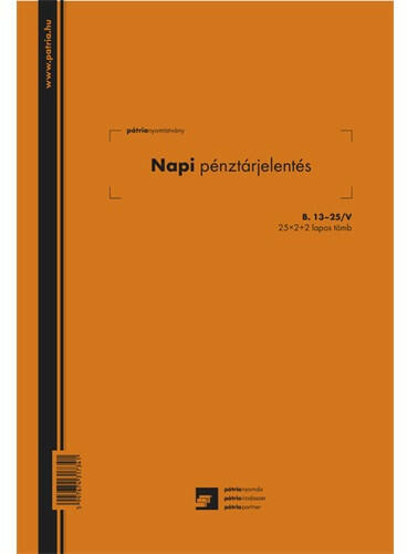 Nyomtatvány, időszaki pénztárjelentés, 25x4, A4, VICTORIA B. 13-21, 10 tömb/csomag (NVB1321V) - kiváló átírás - kiváló perforáció - ellenőrzött minőség - kiváló ár-érték arány - kiszerelési egység tartalma: 10 tömb/csomag - kivitel : 25x4 lap - A4 méret - álló Itt megtekinthető és letölthető a használati útmutató. Gyártó/első EU forgalmazó elérhetősége: