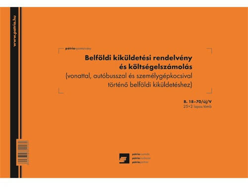 Belföldi kiküldetési rendelvény és költségelszámolás 25x2 lapos tömb A/4 fekvő 25x2 lapos tömb A/4 fekvő