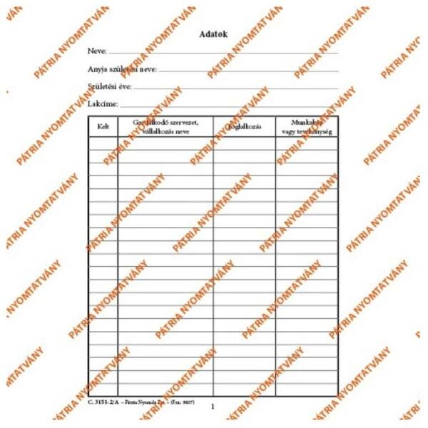 B. 3161-4/UJ 290x195 "Munkavállaló egészségügyi törzslapja" nyomtatvány - Munkavállaló egészségügyi törzslapja - Méret: 29 x 19,5 cm - Termék kód: B. 3161-4