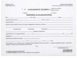 Egészségi alkalmassági vélemény. A/5 méretű, fekvő, 2 példányos.