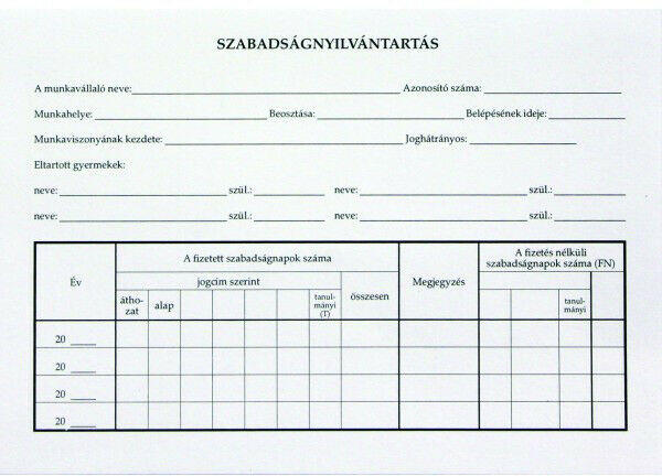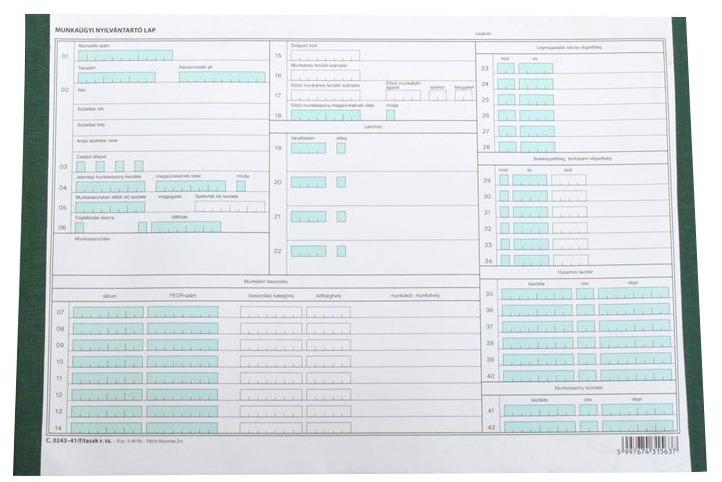 Munkaügyi nyilvántartó tasak. A/4 méretű, fekvõ. Kiszerelés: 400 db/csomag.