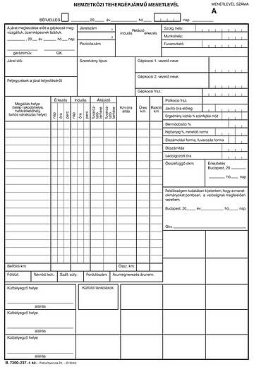 Nemzetközi fuvarlevél, 4 példány, A4, CMR vegykezelt papír A4 méret 4 példányos kitűnő átírás kiszerelési egység: 100 garnitúra/csomag