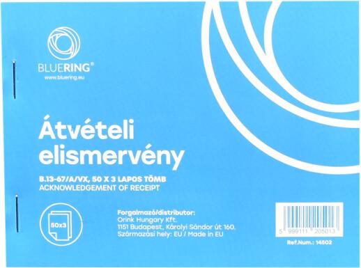 Katalóguskód: 37501GPSR: Orink Hungary Kft. ; H-1151 Budapest, Károlyi Sándor út 160. ; info@orinkhungary. hu; https://orink. hu/ SZABADSÁGNYILVÁNTARTÁS A/5 B. 18-50Gyártó : Bluering