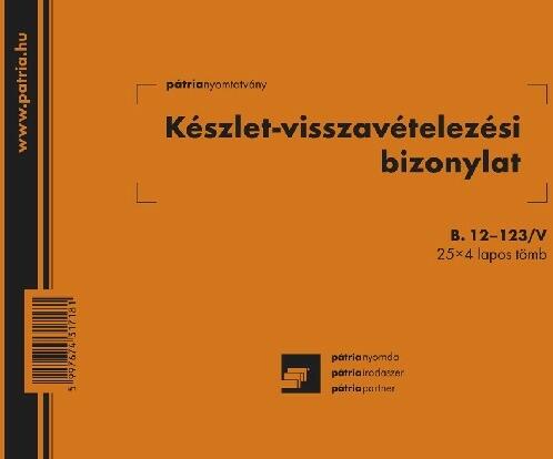 Készlet visszavételezési bizonylat 8 tételes 25x4 lapos tömb A/5 fekvő Készlet visszavételezési bizonylat 8 tételes 25x4 lapos tömb A/5 fekvő B. 12-123/V