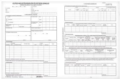 Külföldi kiküldetési utasítás. Méret: A/3, A/4-re hajtva, álló, 4 példányos.