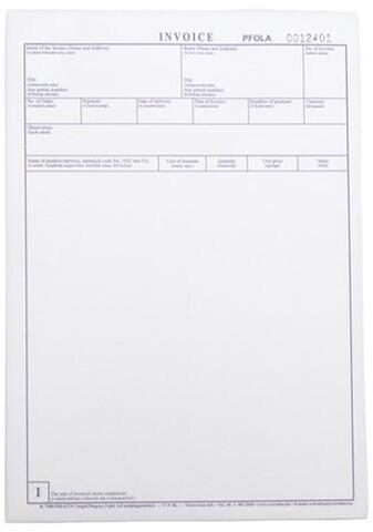 Deviza számla, angol. A/4 méretű, álló, 5 példányos, 2007 angol. Kiszerelés: 200 ív/csomag. Szigorú számadású nyomtatvány.