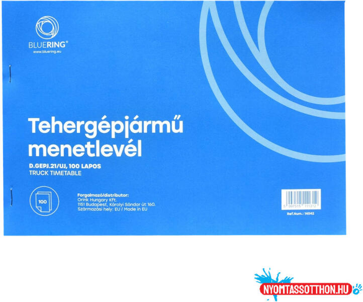 Tehergépjármű menetlevél A4, 100 lapos D. GEPJ. 21/UJ Bluering® Felhasználási terület: A tehergépjárművek számára kötelező a menetlevél használata. A menetlevél kiállítása a küldemény feladójának, kezelése a szállító feladata. A szállítólevél meglétét és annak tartalmát a hatóságok ellenőrzik. 100 lapos tűzött tömb, A4, fekvő, rövidebb oldalán tűzve,