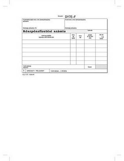 Az egyik leggyakrabban használt nyomtatványtípus; szigorú számadású bizonylat sorfolytonos számozással; áru értékesítésekor, szolgáltatás igénybevételekor a teljesítés igazolására szolgál és alkalmas az áfa elszámolására. 50 x 3 lapos tűzött tömb. Méret: A/5, fekvő. Karton borító, perforált, önindigós belívek. Jogszabályi előírások miatt, adóazonosítás