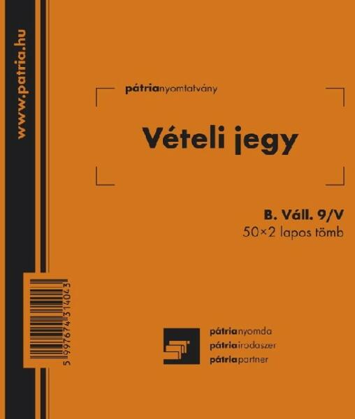 Vételi jegy 50x2 lapos tömb 140x140 mm Vételi jegy 50x2 lapos tömb 140x140 mm B. VALL. 9/V