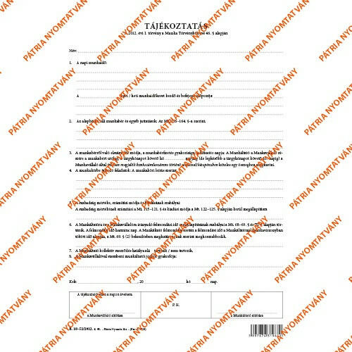Tájékoztatás (munkaszerződéshez) 3 lapos garn. A/4 álló 4 lapos garn. A/4 álló