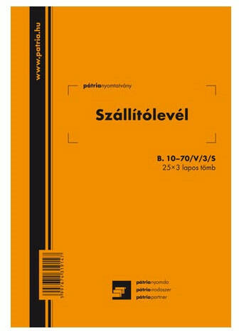 Automatikusan levéve:dec 10 2021 8:14AM- szállítmányok hivatalos, sorfolytonos számozással ellátott hivatalos okmánya, amellyel igazolható az átvétel 25 x 3 lapos tűzött tömb méret: A/5 álló karton borító, perforált, önindigós belívek