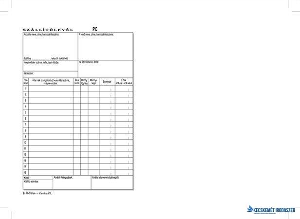 A/6 méretű 3 példányos, fekvő kivitelű, minőségi belívvel és karton fedlappal rendelkező nyomtatvány. Tartós tűzött kötéssel, kiváló átírási képességgel és perforációval. 50 lap/tömb. Kiszerelés: 20 tömb/csomag.