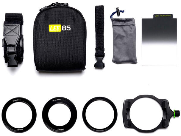 LEE Filters LEE85 Filter System Discover Kit kifejezetten tükör nélküli és kompakt kamera rendszerekhez lett kifejlesztve. Mérete kisebb mint a nagyobb rendszereké, de funkcióiban megegyezik. Csomag tartalma: LEE85 szűrőtartó 1db ND 0,6 közepes erősségű átmenetes szűrő 58mm, 67mm és 72mm adaptergyűrűk LEE85 rendszer tok