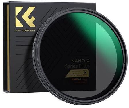 K&F Concept Nano-X 82mm ND2-ND32 XV38 filter Get even better photo results with the K&F Concept filter. The product eliminates the X effect and prevents flare. It will work well when photographing water or dynamic subjects, and its sturdy construction ensures resistance to damage. In addition, for this filter the lens hood should be 40.5mm. ND2-ND32 filters You can adjust the filter from N
