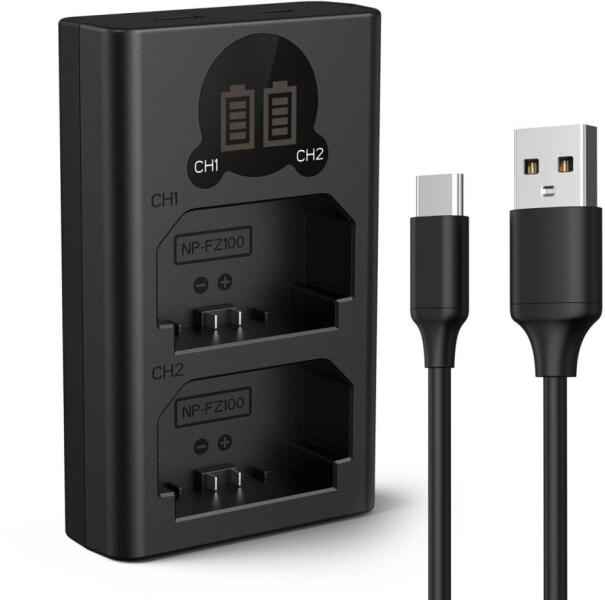 K&F Concept Sony NP-FZ100 Dupla Utazó Gyors-Töltő -USB-C (Type C) Sony FZ100 Charger Bemutatjuk a K&F Concept NP-FZ100 LCD akkumulátor töltőt, egy sokoldalú és megbízható megoldást a Sony NP-FZ100 kameráihoz. Azt célzva, hogy standard kompatibilitást biztosítson, ez a töltő tökéletesen illeszkedik a különböző Sony fényképezőgépmodellekhez, beleértve az Alpha A7
