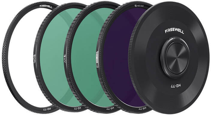Három szűrő készlet Freewell M2 sorozat 77mm Set of 3 77mm magnetic filters Freewell M2 series Create exceptional shots with impressive quality. The set includes filters such as ND1000/CPL/UV, so they will work well in a variety of situations. What's more, a lens hood with a convenient grip protects your lens from dirt and damage, and a magnetic adapter allows you to easily mount the filter. I