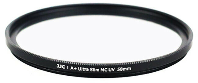 58mm-es UV szűrő vékonyított, többszörösen tükröződés mentesített A JJC A + F-MCUV sorozatú Ultra Slim Multi-Coated UV szűrő hatással van az ultraibolya fény elnyelésére. A szűrőt 6 réteg bevonattal vonták be a szellemkép és fény visszaverődés csökkentése érdekében. Az átlagos fényáteresztés nem kevesebb, mint 99,5%, ami magas színhűséget biztosít Önnek. A