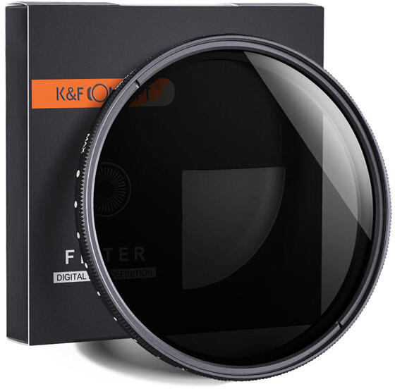 Ez a K&F Concept-től származó Variable Fader ND2-ND400 szűrő egy 82 mm-es változtatható neutrális sűrűségű szűrő, amely 1 és 8,6 fokozat közötti állítható fénycsökkentést biztosít. A teljes képet egyenletesen sötétíti, így a szokásosnál nagyobb rekesznyílással vagy lassabb záridővel is készíthető fénykép. Az expozíciós idő lassításával vagy a rekes