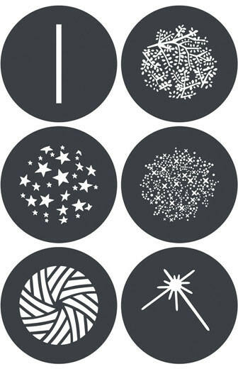 Hat Gobo 148mm átmérő Különböző minták kivetítését teszi lehetővé A Godox GP-GS3 Gobo készletet az MG1200Bi-hez tervezték. A készlet hat darab 148 mm-es gobót tartalmaz, amelyek különböző mintákat adnak bármilyen kreatív munkához, mint például színház, videó, film vagy divat. A készlet olyan gobókat tartalmaz, mint a spirál, oszlop és csillagok.