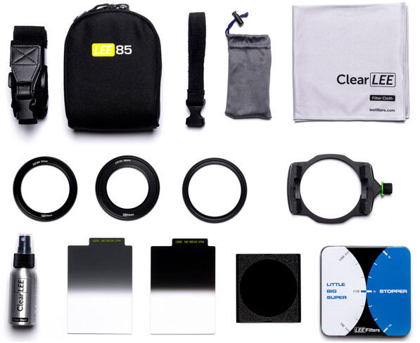 LEE Filters LEE85 Filter System Aspire Kit kifejezetten tükör nélküli és kompakt kamera rendszerekhez lett kifejlesztve. Mérete kisebb mint a nagyobb rendszereké, de funkcióiban megegyezik. Csomag tartalma: LEE85 szűrőtartó 1db ND 0,6 közepes erősségű átmenetes szűrő 1db ND 0,9 közepes erősségű átmenetes szűrő 1db Bigstopper (10 stopos) - tárolótokkal 58mm, 67mm és 72mm