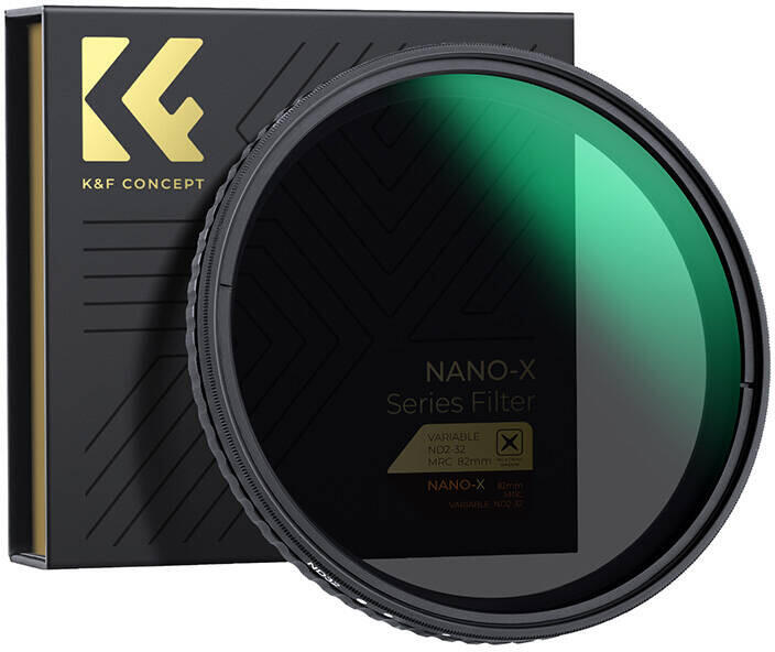 Szűrő Nano-X 82 mm XV38 K&F Concept K&F Concept Nano-X 82mm ND2-ND32 XV38 filter Get even better photo results with the K&F Concept filter. The product eliminates the X effect and prevents flare. It will work well when photographing water or dynamic subjects, and its sturdy construction ensures resistance to damage. In addition, for this filter the lens hood should be 40.5mm. ND2-ND3