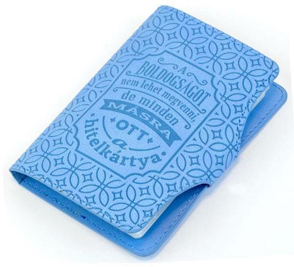 Világoskék irattartó és kártyatartó humoros felirattal: A boldogságot nem lehet megvenni, de másra ott a hitelkártya. A kártyatartó patenttal záródik. 20 bankkártya helyezhető el benne. Mérete: 10,5x1x7,5 cm. Szín: világoskék. Válogass a többi History & Heraldry ajándékok között >>