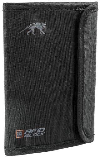 Tasmanian Tiger Passport Safe irattartó, RFID / NFC védelemmel, 2 db zsebbel iratokhoz és hitelkártyákhoz, rögzíthető hátizsákhoz vagy táskához. Méret: 15 x 11 x 1 cm, súly: 40g. Erős anyag, sok tároló rekesz.