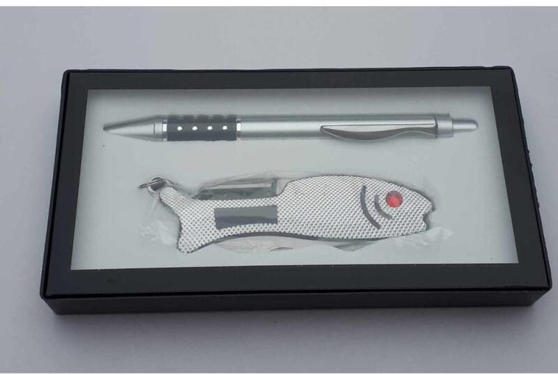 Ajándék szett elegáns kivitelezésű tökéletes ajándék, amely egyszerű és hasznos. A szett tartalma 1 db halformájú bicska és 1 db toll.