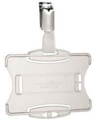 Azonosítókártya-tartó, akril, nyitott, csíptetővel, DURABLE Nyitott kivitelű azonosítókártya-tartó. -nyitott kivitelű kártyatartó-forgatható csíptetővel-1 db kártyához-álló és fekvő formátumban is használható-kombinálható lánccal, textilszalaggal vagy kihúzható tartóval-műanyag-belső méretek: 87 x 54 mm (szé x ma)-külső méretek: 92 x 70 mm (szé x ma) Gyárt