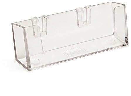 Szórólaptartóra akasztható. Fekvő. Belső méret: 95 x 29 x 18 mm.