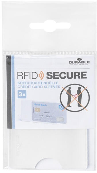 BANKKÁRTYA TOK 1DB-OS (3DB/CSG) BM:54X86MM RFID VÉDELEM DURABLE Az RFID-védelem, hitelkártya birtokosa védi a személyes adatok jogosulatlan olvasását. RFID védőburkolat, átlátszó elülső 1 hitelkártya méretű kártyához TÜV által jóváhagyott védelem 13,56 MHz-en. A hüvelykujjával gyors eléréshez Belső méretek: 54 x 86 mm Külső méretek: 61 x 90 mm Szín: átlátszó H