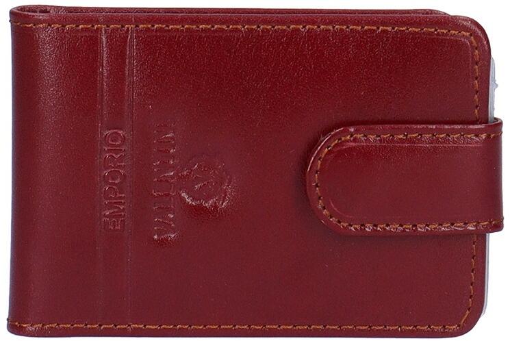 Emporio Valentini bőr kártyatartó. Fekvő fazonú. Patenttal zárható-nyitható. 10 db kártyatartó hely. 1-1 db belső kártyatartó zseb. Külső méretek (szélesség x magasság x mélység): 10 x 7 x 2 cm.