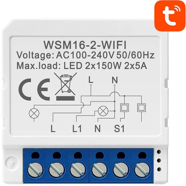 Smart Switch Module WiFi Avatto WSM16-W2 TUYA Smart Switch Module WiFi Avatto WSM16-W2 TUYA Make it easy to control the lighting in your home. Avatto's functional 2-channel in-duct switch allows you to control your lights remotely - using the TUYA / Smart Life app or Google Assistant or Amazon Alexa voice assistants. It also allows you to create work schedules, timers and automations. At the same