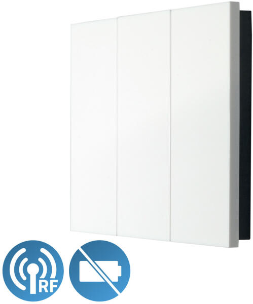 — 6 csatornás nyomógomb stílusú adó — Működési mód: Ki/Be/Dimmelés/jelenet — Felületre szerelhető, felhasználóbarát, vékony kialakítás — Tápellátás: a nyomógomb kinetikus energiája (Elem és külső tápellátás nélkül működik) — Élettartam: > 200000 kapcsolás — IP44 védettség — Rádiófrekvencia: 433 MHz — Moduláció: FSK — Átviteli távolsá