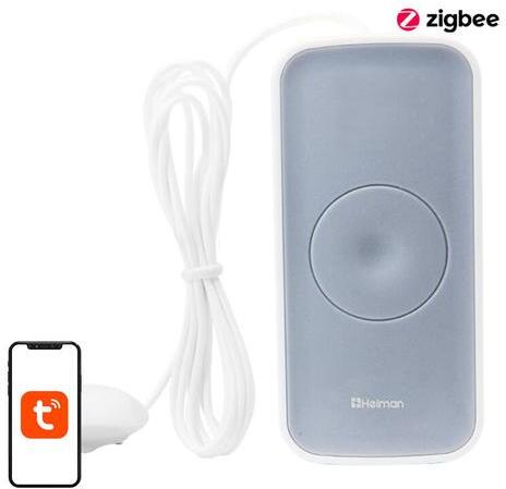 Heiman HS1WL-E Tuya smart ZigBee flood sensor The Heiman HS1WL-E flood sensor uses a Zigbee wireless module to detect water leaks. It features low power consumption for long battery life. The separate design of the body and sensor effectively prevents the effects of high humidity, making it ideal for flood protection in various locations such as basements, boiler rooms, hotels, water towers, swimm