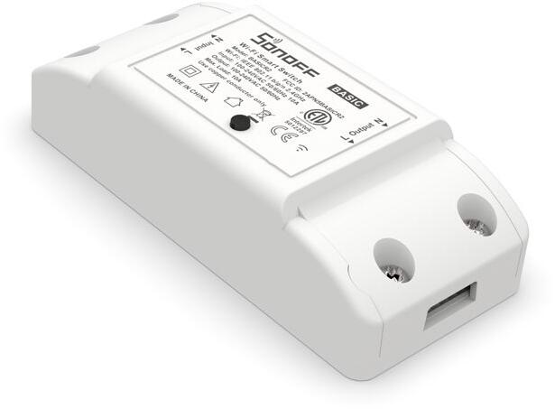 A Sonoff belépő szintű, WiFi-s, az interneten keresztül mobiltelefonról távolról vezérelhető, időzíthető okos kapcsoló reléje 2200W (10A) maximális teljesítménnyel.