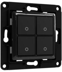 A Shelly WiFi-s okosrelékhez való kapcsolószerelvény és sorolókeret segítségével helytakarékosan és egyszerűen alakítható ki okos fali villanykapcsoló, mely még a legkisebb mélységű fali aljzatba is belefér. Ez a Shelly villanykapcsoló rendszer fekete színű, 4 gombos kapcsolómodulja + Plus i4 relétartó adaptere.