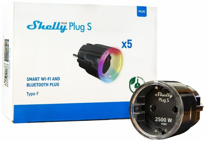 A Shelly PLUS Plug S a népszerű Shelly Plug S konnektor új, WiFi+Bluetooth verziója, mely már Wi-Fi repeater funkcióval is fel van szerelve. Ez az egyik legkisebb méretű, WiFi-s okoskonnektor, beépített áramfogyasztás-mérővel, 2500W (12A) maximális teljesítménnyel. Ez a fekete színű termékverzió. A csomagban most 5 db Shelly Plus Plug S okoskonnektort kapsz.