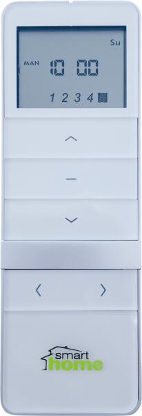 DC1805 5 + 1 (csoportos vezérlés) csatornás időprogramos távirányító mágneses fali tartóval, fém burkolattal és elegáns üveg előlappal. Az LCD kijelző segít a felhasználóknak az aktuális beállítások ellenőrzésében. A DC1805 5 + 1 csatornás időprogramos kézi távirányító termék elemet is tartalmaz a folyamatos működéshez, és a napi időprogram lehetővé teszi a