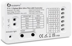 A Gledopto Pro termékcsalád professzionális Zigbee 3.0 + RF vevős LED vezérlés 5-az-1-ben Mini tagja a termékkör kisebbik csúcsmodellje. 5 féle üzemmódban is képes működni: RGBCCT, RGBW, RGB, CCT (WW/CW) és Dimmer, és 5V-24V DC LED-eket képes vezérelni a LED típusáhz illő funkciókkal (szín beállítása, fehér fény esetén a színmelegség beállítása, fényerő-szabál