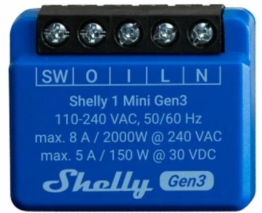 A Shelly PLUS 1 MINI GEN3 a Shelly PLUS 1 mini-nek a továbbfejlesztett verziója. A Shelly Plus 1 mini-hez hasonlóan kis méretű és azzal megegyező teljesítmény kapcsolására képes, 8A maximális áram kapcsolását képes ellátni, ideális választás kontaktus vezérléséhez. A különbség elődjődjéhez képest, hogy a Shelly saját fejlesztésű chipjét alkalmazzák benne. A modu