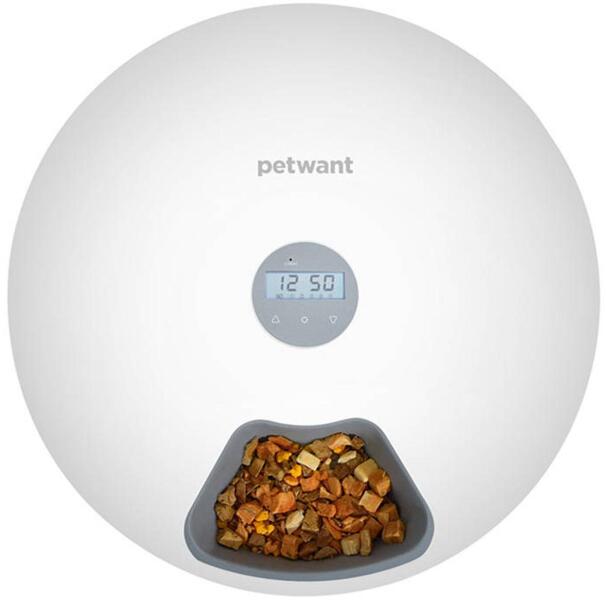 Termék részletekÉjjel-nappal eteti kedvencét! A Petwant F6 LED egy automatikus adagoló négylábú barátja számára. A 180 ml-es edényekbe bármilyen ételt belehelyezhet, és a robot a beállított időponttól függően a megfelelő ételtípust állítja be. Távoli etetés Programozza kedvence ételeit az LCD-kijelzőn, töltse meg a tálakat étellel, és készítse fel kedvencét a friss táplálékra