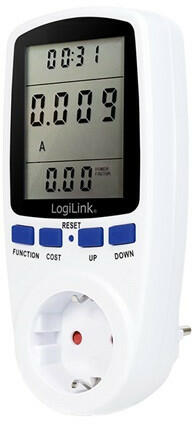 LogiLink KONNEKTOR FOGYASZTÁSMÉRŐVEL EM0003 Termék leírás Névleges feszültség: 230V, 50 Hz Maximális fogyasztás: 16A Energiakijelző: 0 999,9 kWh: 0 999,9 kWh Időkijelzés: 0 999,9 Std. Üzemi hőmérséklet: +5 C és +40 C Működési terület: Beltéri Névleges teljesítmény: akár 3680 W Biztonsági zárral Beépített akkumulátor Programozható teljesítménydíj (cent/kWh) Az e