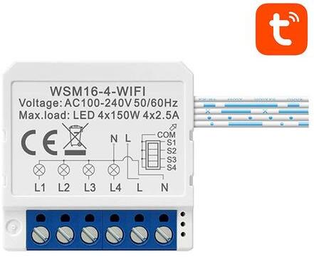 Smart Switch Module WiFi Avatto WSM16-W4 TUYA Make it easy to control the lighting in your home. Avatto's functional 4-channel in-duct switch allows you to control your lights remotely - using the TUYA / Smart Life app or Google Assistant or Amazon Alexa voice assistants. It also allows you to create work schedules, timers and automations. At the same time, the device is compact and very easy to i
