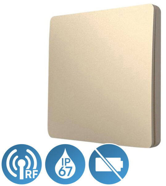 Kültéri Kinetikus nyomókapcsoló beépített RF adóval Felületre szerelhető, felhasználóbarát, vékony kialakítás Tápellátás: a nyomógomb kinetikus energiája (Elem és külső tápellátás nélkül működik) Élettartam: > 200000 kapcsolás IP67 védettség Rádiófrekvencia: 433 MHz Moduláció: FSK Átviteli távolság: 80 m (kültér), 25 m (beltér) Kompatibilis: KRC-101/1