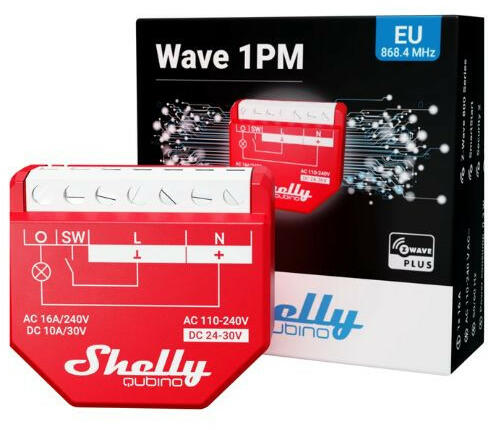 A Shelly Wave 1PM okosrelé modul egy szerelvénydobozba szerelhető, egy 230 VAC áramkör vezérlésére képes, fogyasztásmérővel ellátott eszköz. A Shelly Wave termékcsalád a Z-Wave protokollt használja a kommunikációhoz, így mindenképp szükség lesz a relémodul használatához egy Z-Wave Hub-ra, vagy USB koordinátorra. A modul megtáplálható egyenáramú és váltóáramú fe