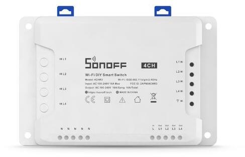 A Sonoff 4CH R3 a Sonoff okos kapcsolórelé-családjának legnagyobb, 4 áramkör vezérlésére képes, DIN-sínre szerelhető tagja, A 4CH Pro-val ellentétben ez a típus csak 230V AC kapcsolására képes, és csak WiFi-vel van felszerelve, RF vevőegységgel nem! Interneten át eWeLink mobiltelefon app-ból vezérelhető, és számos módon időzíthető is. Támogatja az impulzuskapcsolást