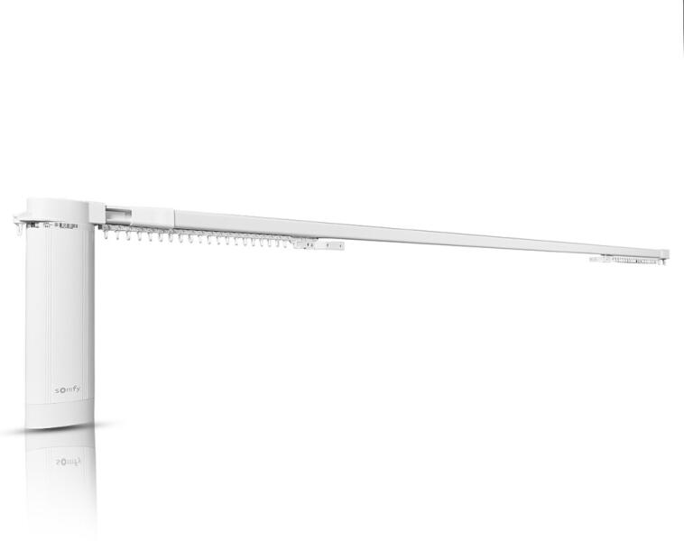 A Somfy motorizációs készlet minden típusú függönyhöz alkalmas: klasszikus, hullámos, pliszírozott vagy harmonikaszerű. Akár 20 kg súlyú függönyt is támogat, a sín hossza pedig 2,2 és 4 méter között állítható. A csomag tartalmazza a motorizációs rendszert, újratölthető akkumulátort, vezérlőpanelt, csavarokat és rögzítő elemeket, S és L mennyezeti tartókat, va